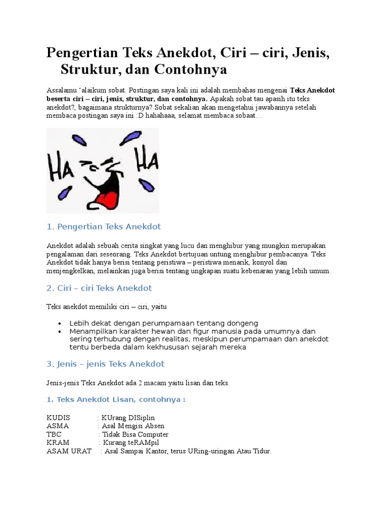 7 Cerita Anekdot Singkat Lucu Pengertian Struktur Ciri