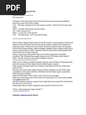 Soalnya orang di komunitas canda tawa biasanya udah kebal dan terbiasa dengan lelucon koplak gila gilaan macam ini. Cerita lucu situs humor indonesia berisi gambar lucu sms lucu teka teki lucu jokes ngakak dan ketawa ketiwi gurauan jenaka guyonan dagelan diupdate setiap hari hiburan dewasa bikin tertawa. Kumpulan cerita lucu tentang sabun cerpen lucu atau cerita pendek lucu berikut ini dijamin membuat anda tertawa.
